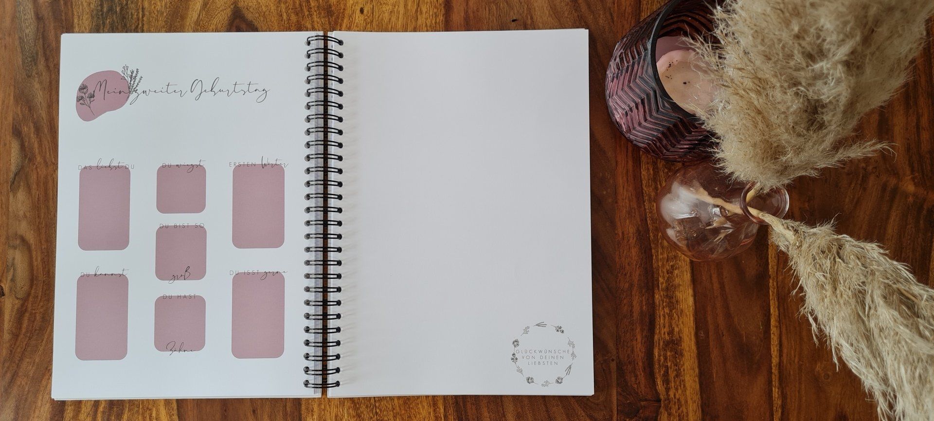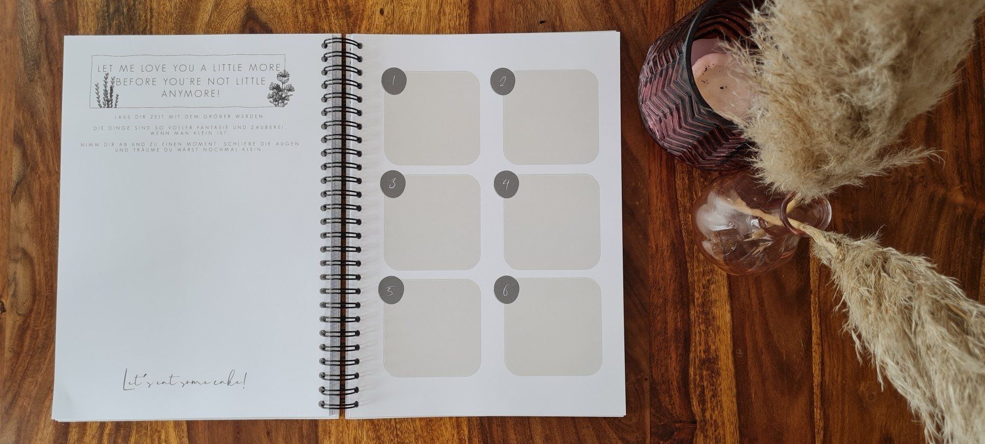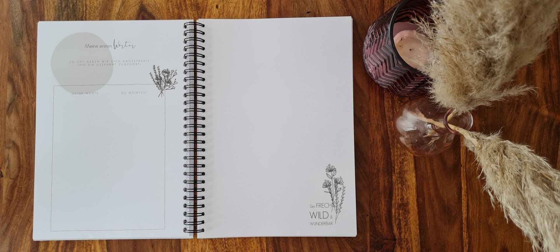 - 6 Seiten Schwangerschaftstagebuch und danach Platz für Fotos